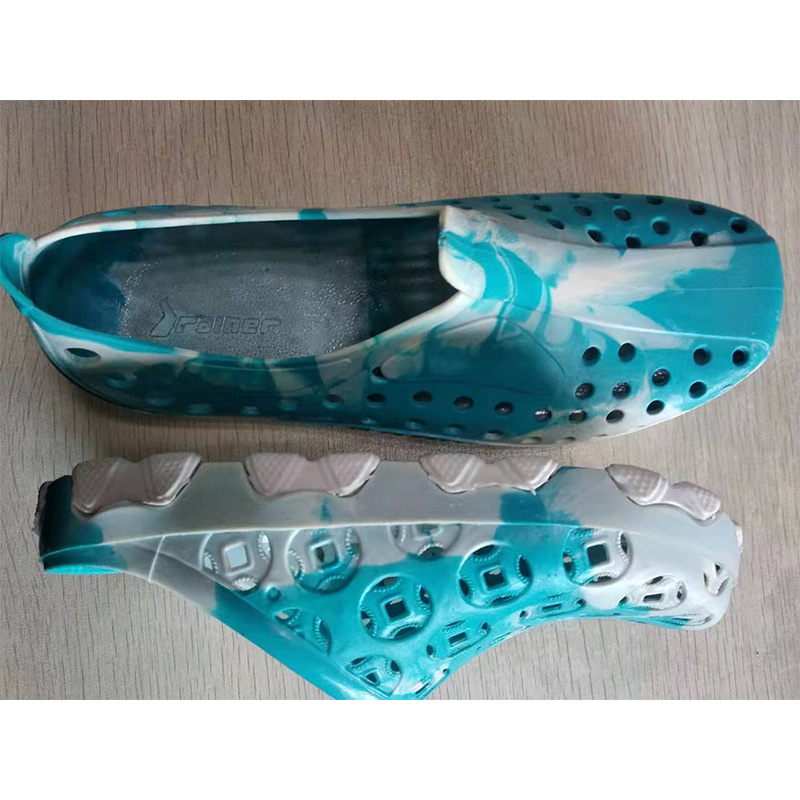 1】可配合各式模具,使用TPR、PVC發(fā)泡及不發(fā)泡原料,生產(chǎn)單、雙、三色鞋底、結(jié)幫拖鞋、涼鞋或不發(fā)泡塑膠鞋類。