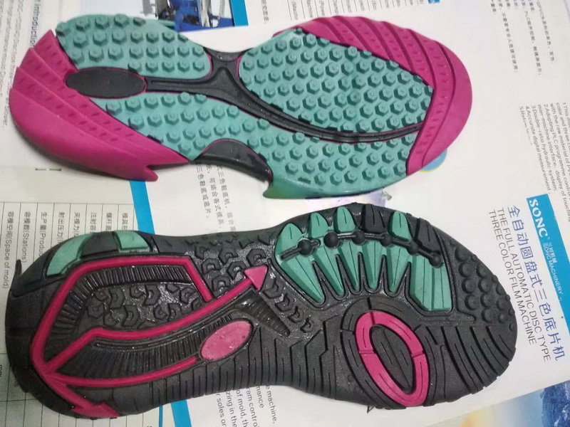 1】可配合各式模具,使用TPR、PVC發(fā)泡及不發(fā)泡原料,生產(chǎn)單、雙、三色鞋底、鞋底片,童鞋底。